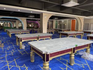 Single Slab vs. Spliced Slabs: Chinese eight-ball tables mostly use 3 spliced slabs (total weight about 400kg), while snooker tables require 6 spliced slabs. The gap at the joints must be ≤0.1mm; otherwise, the cue ball will bounce when crossing the seam. After splicing, SPKI’s slabs are calibrated with a laser level, and the overall flatness error can be controlled within 0.3mm, far exceeding the World Professional Billiards and Snooker Association’s standard of 0.5mm.